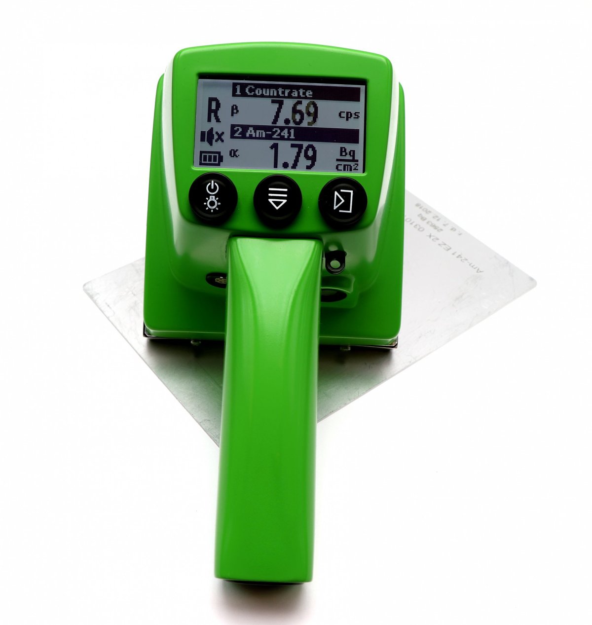 Portable handheld devices intended for the surface activity measurement of alpha, beta, and gamma emitting radionuclides.